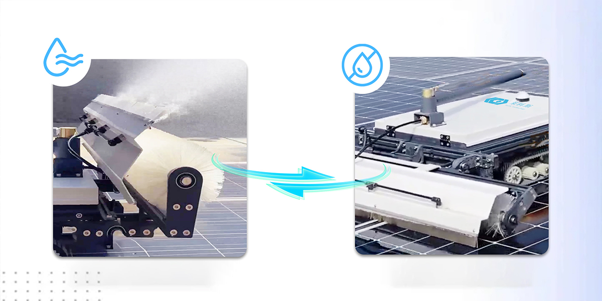 機(jī)器人采用旋轉(zhuǎn)式清潔滾刷,并配備雨簾噴嘴,根據(jù)現(xiàn)場(chǎng)檢測(cè)需求,進(jìn)行干洗與濕洗的切換,快速清洗模式下,清洗機(jī)器人小車一天可清洗2MW光伏電站電池板