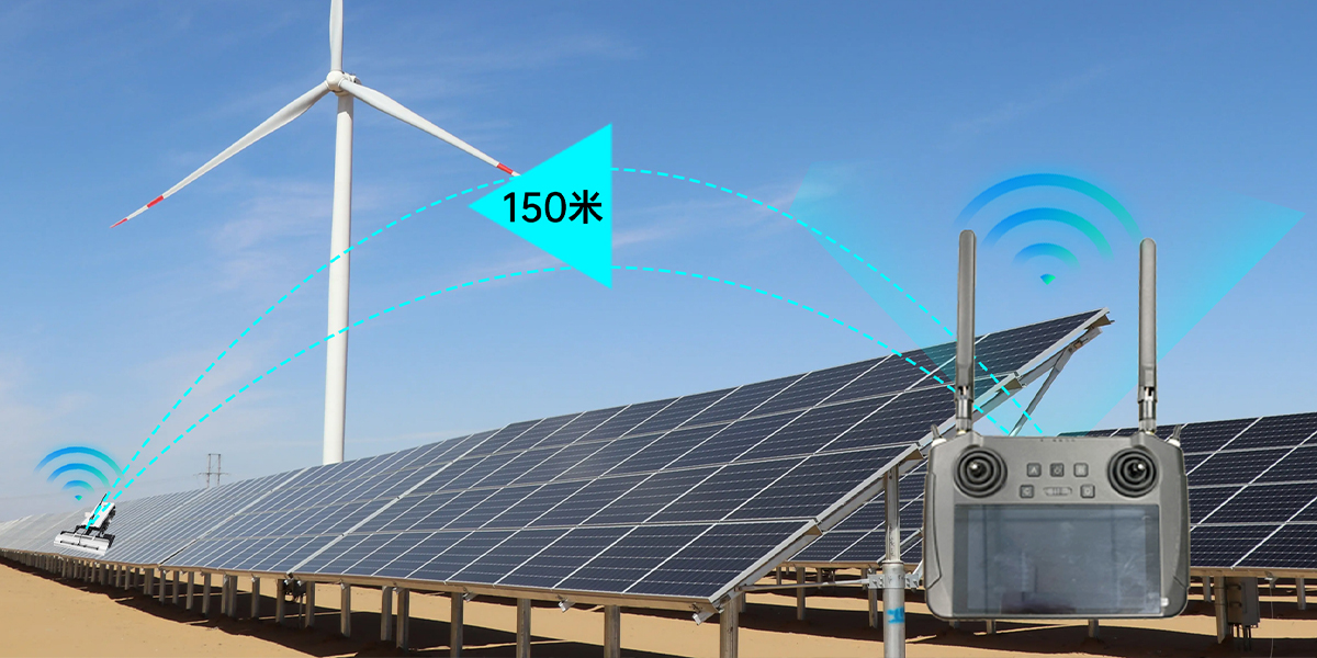 大大減少人員勞動(dòng)力,只需使用遙控器監(jiān)督設(shè)備運(yùn)動(dòng),每天可完成1.5-2MWP光伏電站清潔工作