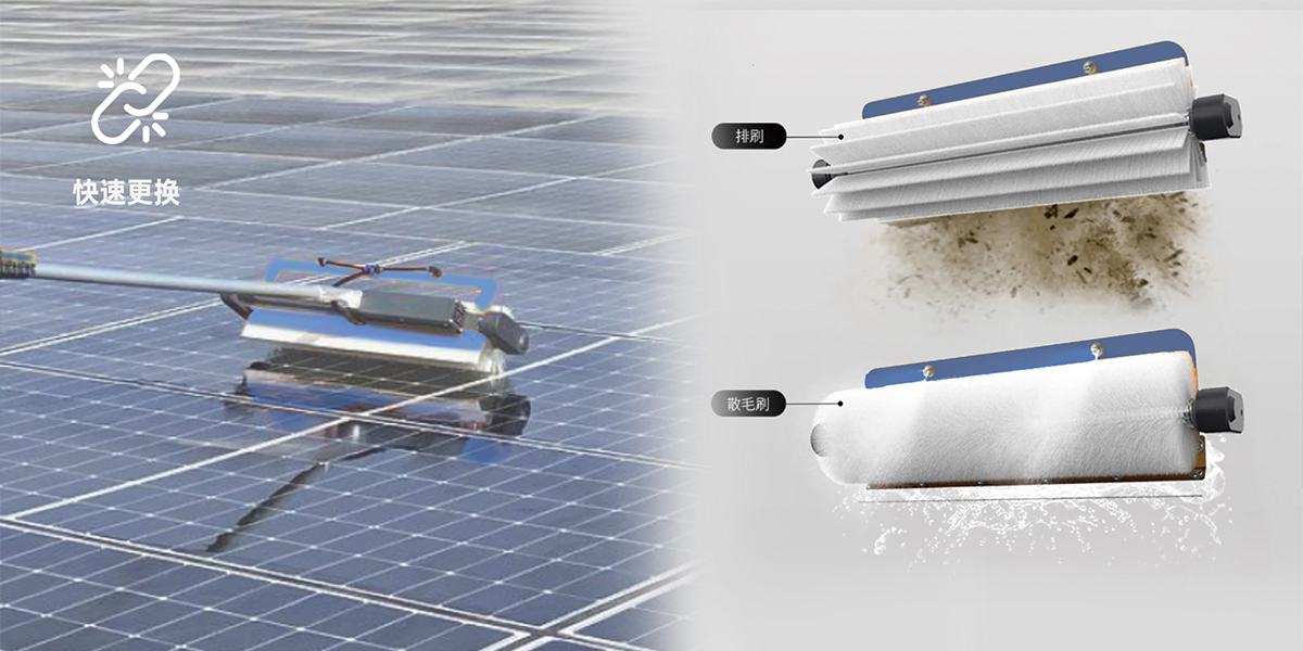 LX-H404共有兩款刷頭可供選擇,干洗和水洗都能適用。排刷:由緊湊成排的刷毛組成,可像掃把一樣不斷拍打揚起灰塵,所以干洗灰塵效果顯著;散毛刷:采用均勻分布的散狀刷毛,可像雨刮器一樣驅趕污水,減少濺射二次污染,所以更適合水洗;刷頭設計了快拆裝置,2分鐘內可完成快速替換