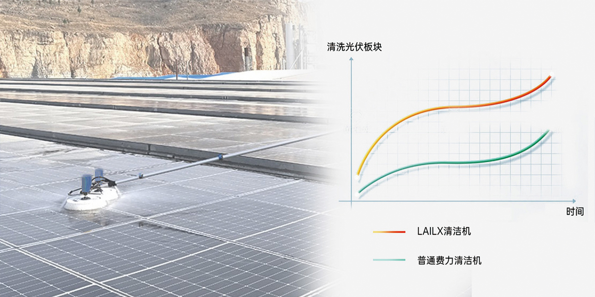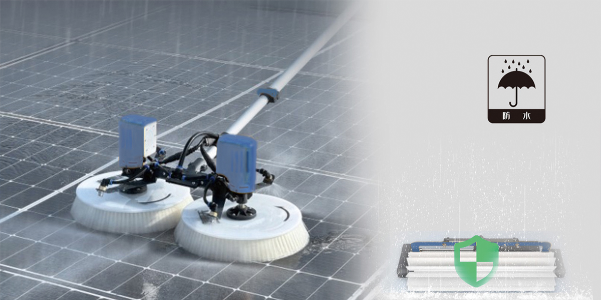LX-H404滾刷光伏清洗機采用桿頭鵝頸設計,比直桿省力,更符合人體工程學,施工人員手握清潔桿按壓清洗更輕松,效率能明顯提高,一天可清洗約0.5-1.2MW。伸縮桿長1.5-7.5米,可自由伸縮,水洗干洗兩用,可適應各種復雜地形環境;鋰電池組續航約4-5小時,工作起來更加高效。產品設計合理,操作簡單,有效降低人員的勞動強度。
