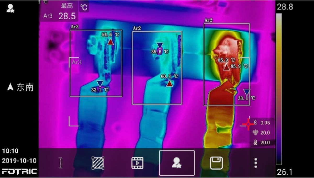 本機可以設(shè)置環(huán)境溫度為基準溫度,屏蔽環(huán)境溫度干擾,自動計算設(shè)備的溫升,同時可以自動計算電氣設(shè)備的相間溫差,實現(xiàn)更科學(xué)的診斷分析。